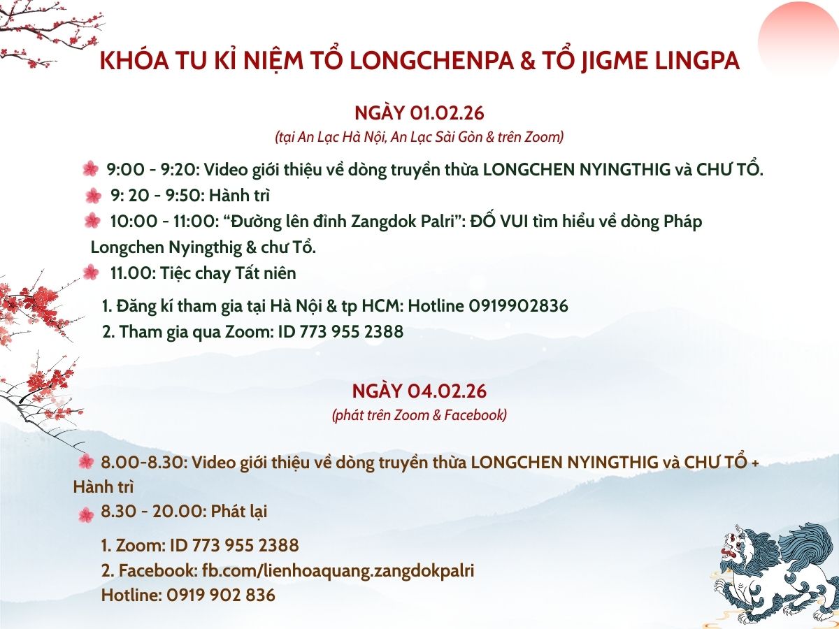 LỄ KỈ NIỆM TỔ LONGCHENPA NHẬP NIẾT BÀN TẠI TU VIỆN LUNG NGON 2026